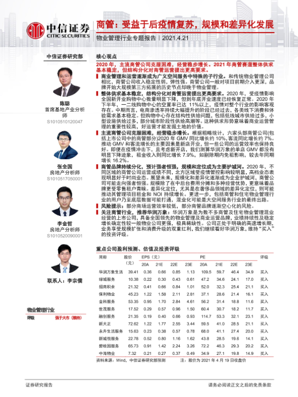 【中信证券】【20210421】商管:受益于后疫情复苏,规模和差异化发展-13页 行业研究