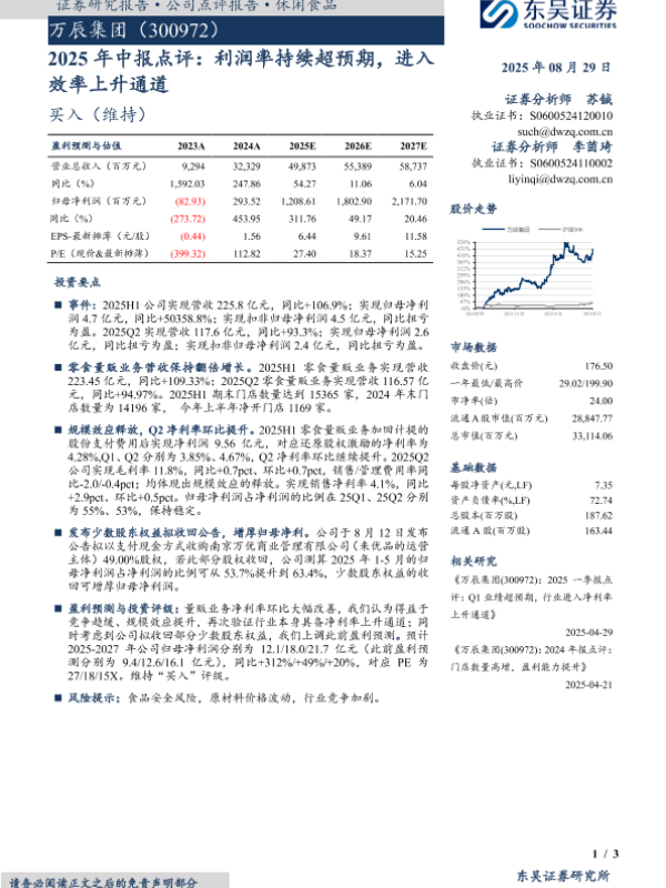 【东吴证券】【20250829】万辰集团-2025年中报点评:利润率持续超预期,进入效率上升通道-3页 证券期货研究报告