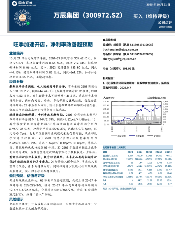 【海通国际】【202510】万辰集团(300972)25Q3业绩超预期,盈利能力持续提升-12页 证券期货研究报告
