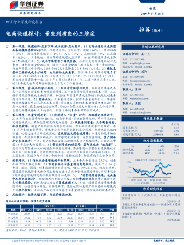 【华创证券】【20190728】物流行业深度研究报告:电商快递探讨,量变到质变的三维度-32页 行业研究