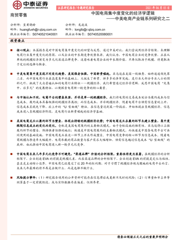 【中泰证券】【20210607】中国电商集中度变化的经济学逻辑-18页 行业研究