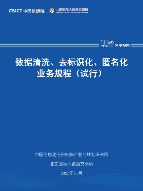 【中国信息通信研究院产业与规划研究所】【202311】数据清洗、去标识化、匿名化业务规程(试行)-52页 指南