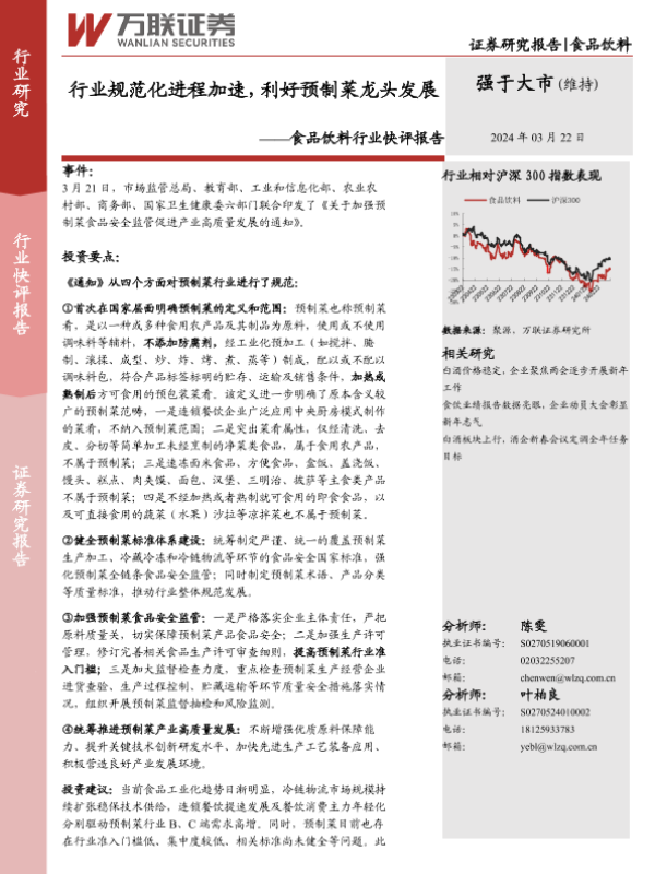 【万联证券】【20240322】行业规范化进程加速,利好预制菜龙头发展-3页 行业研究