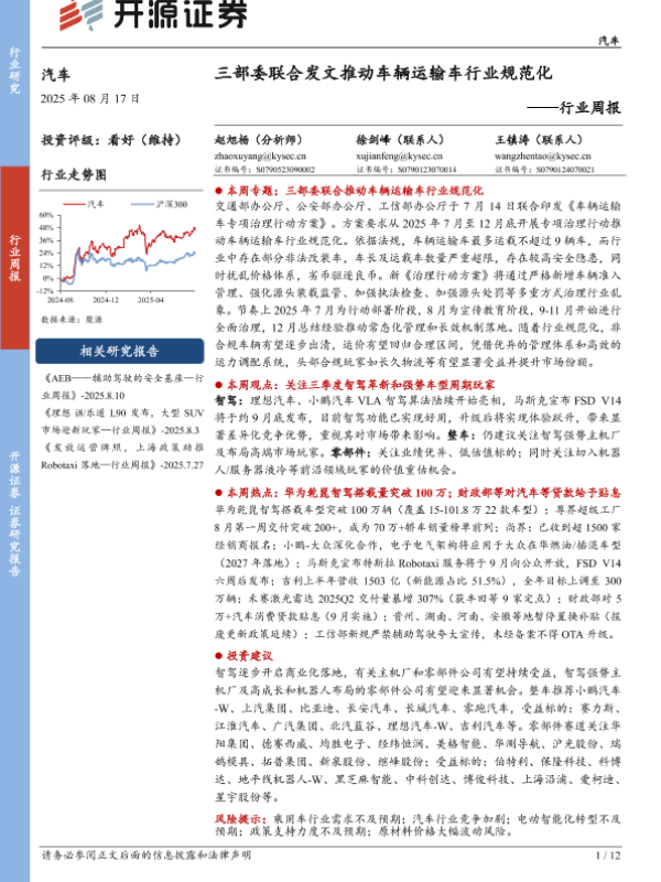 【开源证券】【20250817】三部委联合发文推动车辆运输车行业规范化-12页 证券期货研究报告