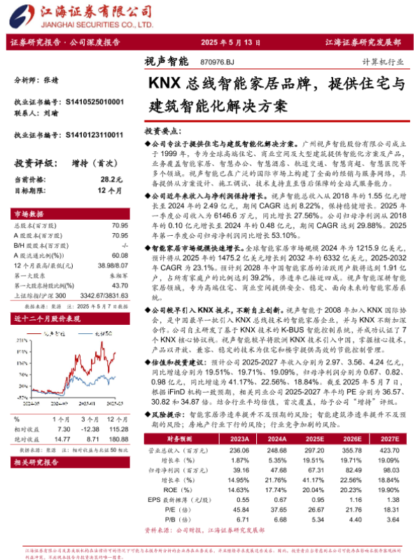 【江海证券】【20250513】视声智能(870976)KNX总线智能家居品牌,提供住宅与建筑智能化解决方案-25页 证券期货研究报告
