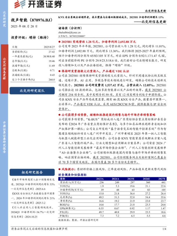 【开源证券】【20250828】视声智能-KNX安全系统全球领军者_技术壁垒与出海双轮驱动成长-4页 证券期货研究报告