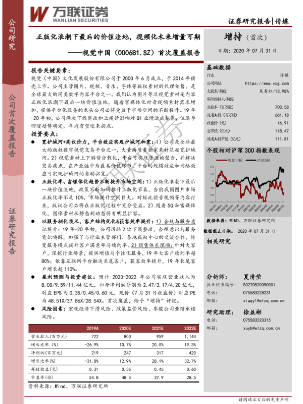 【万联证券】【20200731】20200731-万联证券-视觉中国-000681.SZ-首次覆盖报告:正版化浪潮下最后的价值洼地,视频化未来增量可期-25页 行业研究