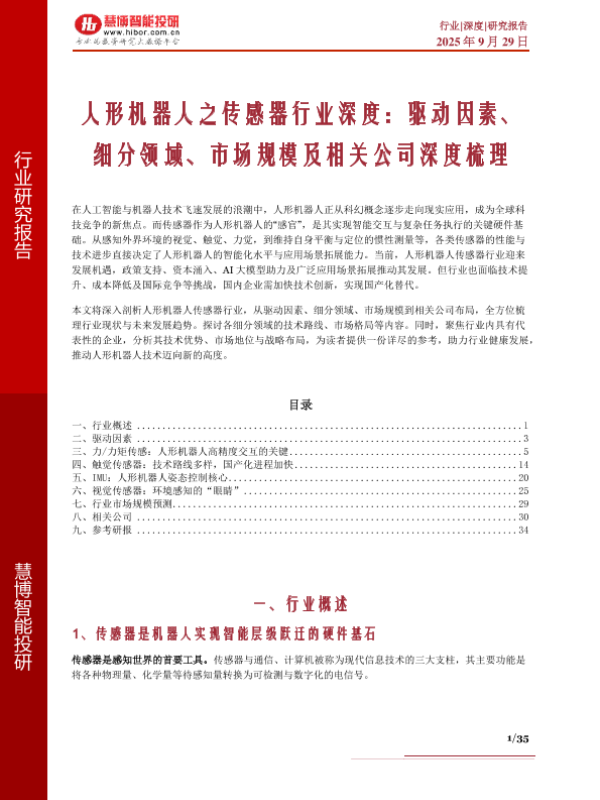 【慧博智慧博】【2024】人形机器人之传感器行业深度:驱动因素、细分领域、市场规模及相关公司深度梳理-35页 证券期货研究报告