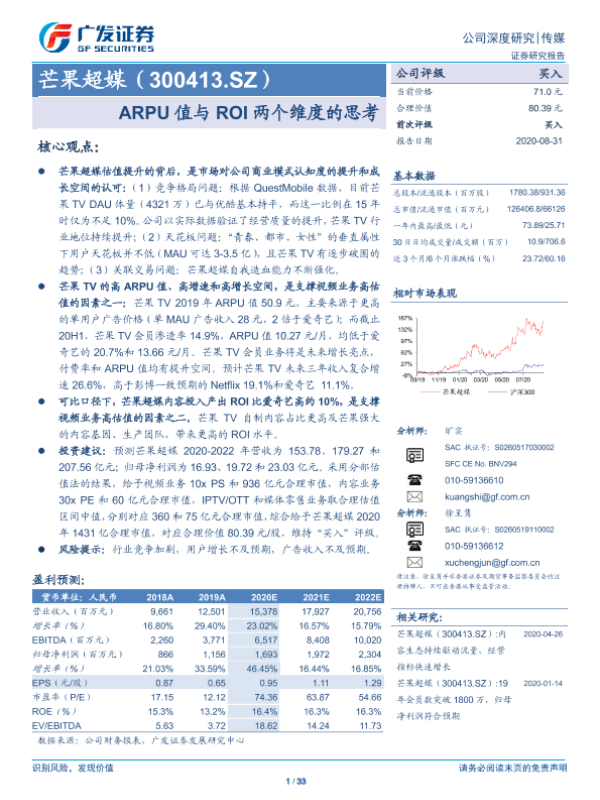 【广发证券】【20200831】芒果超媒(300413.SZ)ARPU值与ROI两个维度的思考-33页 行业研究