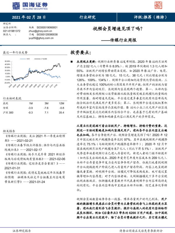 【国海证券】【20210228】视频会员增速见顶了吗?-19页 行业研究