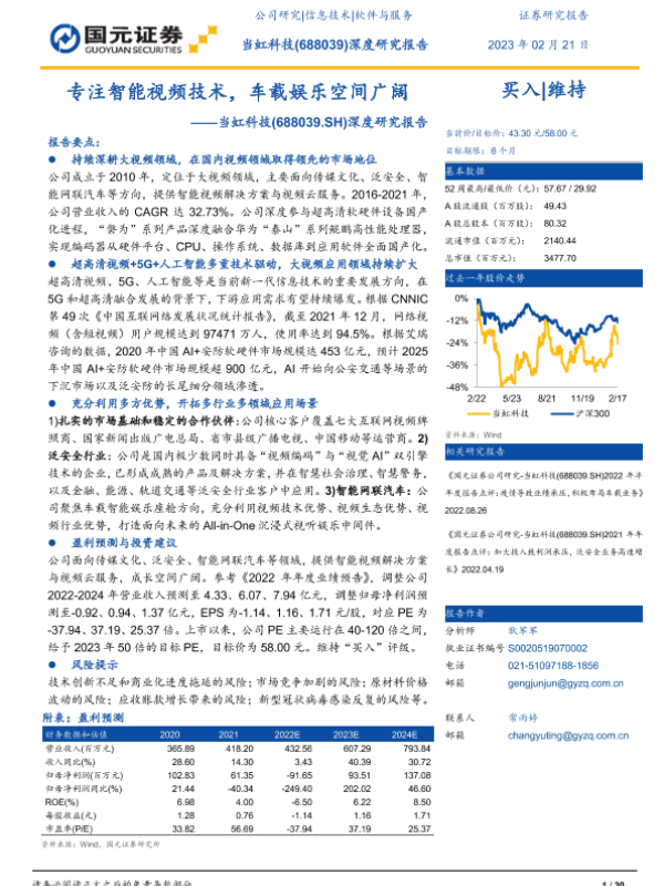 【国元证券】【20230221】20230221-国元证券-当虹科技-688039.SH-深度研究报告:专注智能视频技术,车载娱乐空间广阔-30页 行业研究