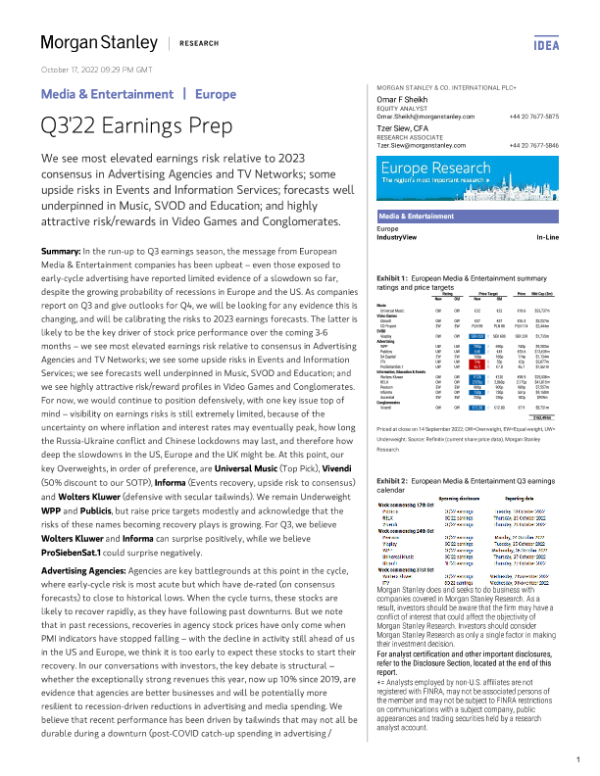 【Morgan Stanley】【20221017】Media & Entertainment Q322 Earnings Prep-61页 行业研究