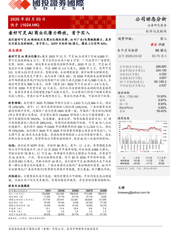 【国投证券国际】【202603】看好可灵 AI商业化潜力释放,首予买入-31页 证券期货研究报告