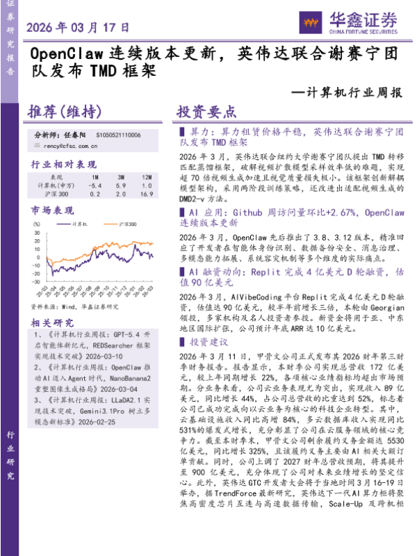 【华鑫证券】【202603】2026年 03月 17日 OpenC law连续版本更新,英伟达联合谢赛宁团队发布 TMD框架-18页 证券期货研究报告