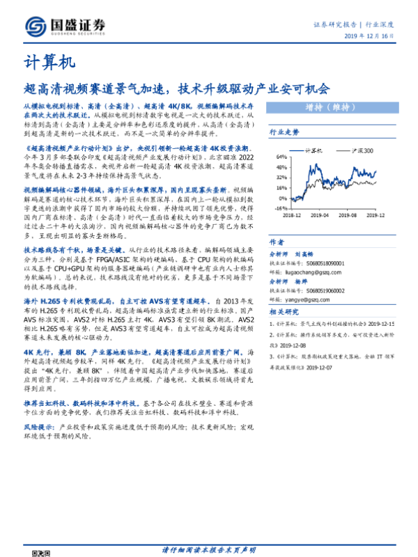 【国盛证券】【20191224】计算机:广电总局推进5G高新视频技术研究,超高清视频赛道充分受益-5页 行业研究