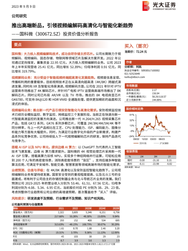 【光大证券】【20230909】推出高端新品,引领视频编解码高清化与智能化新趋势——国科微(300672.SZ)投资价值分析报告-31页 行业研究