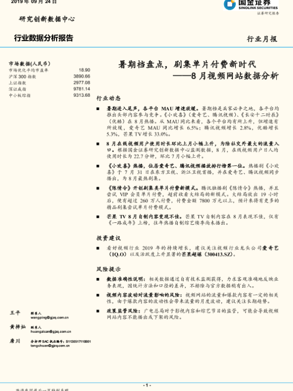 【国金证券】【20190924】8月视频网站数据分析:暑期档盘点,剧集单片付费新时代-17页 行业研究