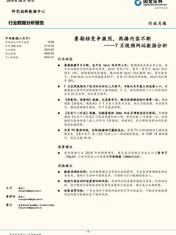 【国金证券】【20190819】7月视频网站数据分析:暑期档竞争激烈,热播内容不断-17页 行业研究