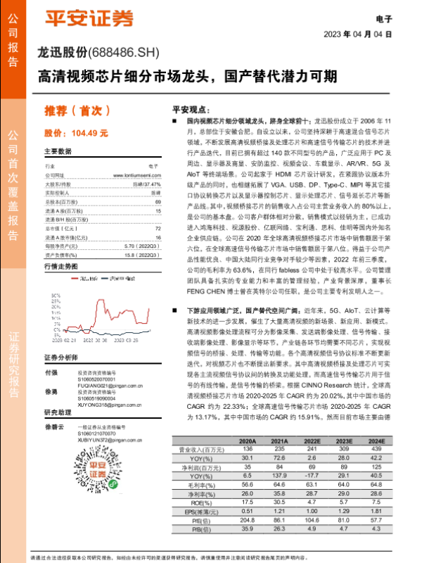 【平安证券】【20230404】龙迅股份-高清视频芯片细分市场龙头,国产替代潜力可期-29页 行业研究
