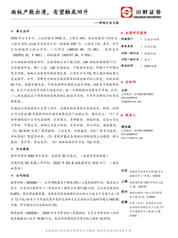 【川财证券】【20200608】科技行业日报:面板产能出清,有望触底回升-4页 证券期货研究报告