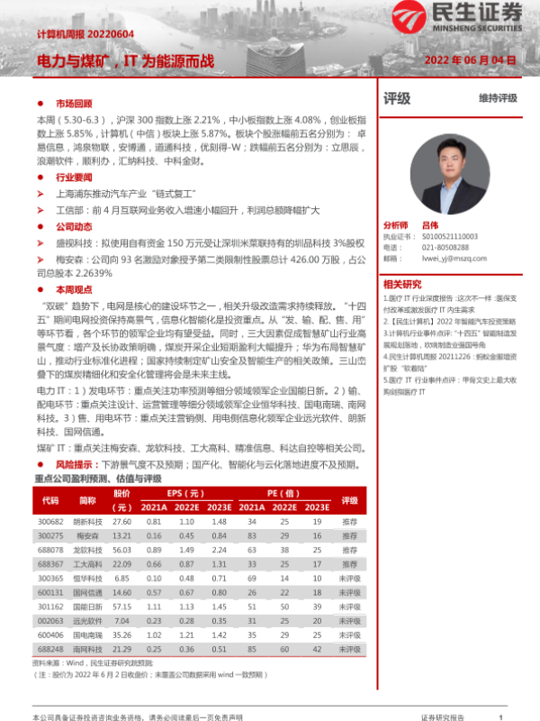 【民生证券】【20220604】计算机周报:电力与煤矿,IT为能源而战-20页 行业研究