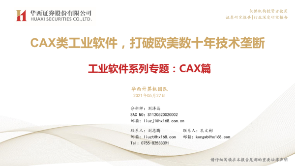 【华西证券】【20210527】工业软件系列专题:CAX篇:CAX类工业软件,打破欧美数十年技术垄断-34页 行业研究