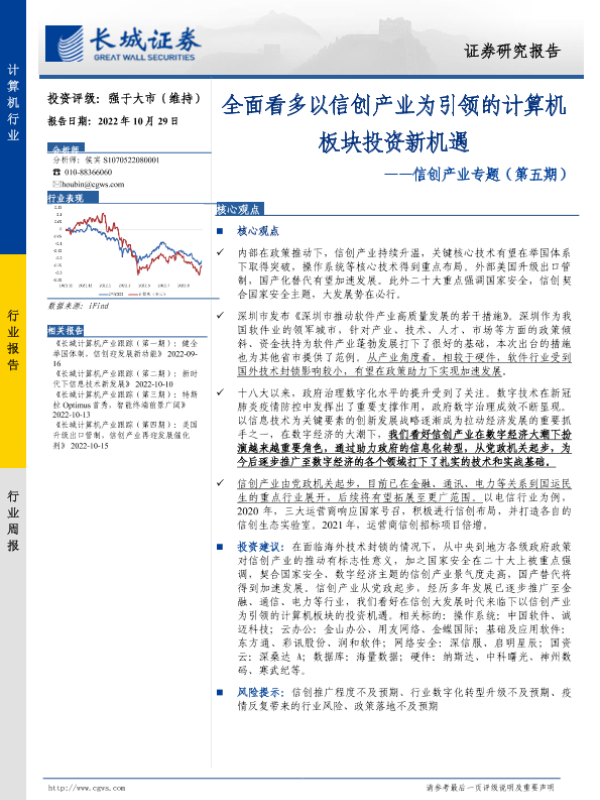【长城证券】【20221029】20221029-长城证券-信创产业专题(第五期):全面看多以信创产业为引领的计算机板块投资新机遇-12页 行业研究