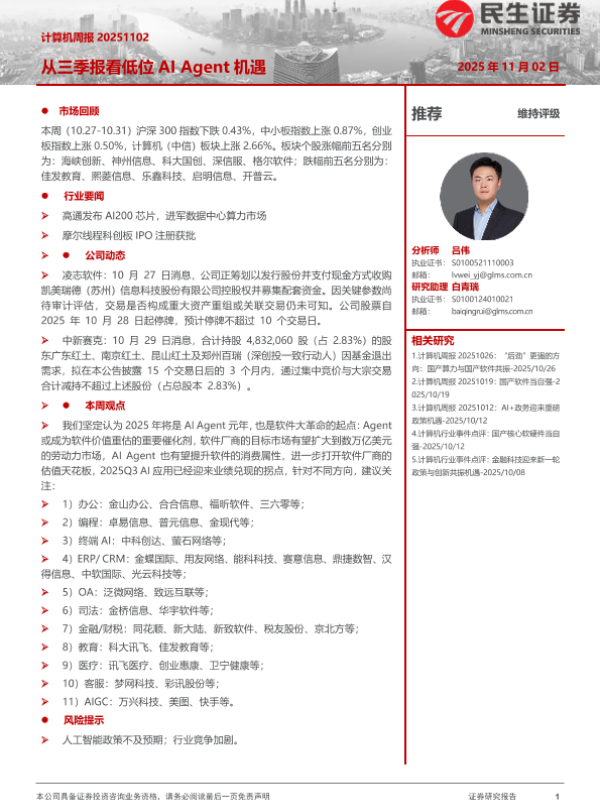 【民生证券】【202511】从三季报看低位AI Agent机遇-17页 证券期货研究报告