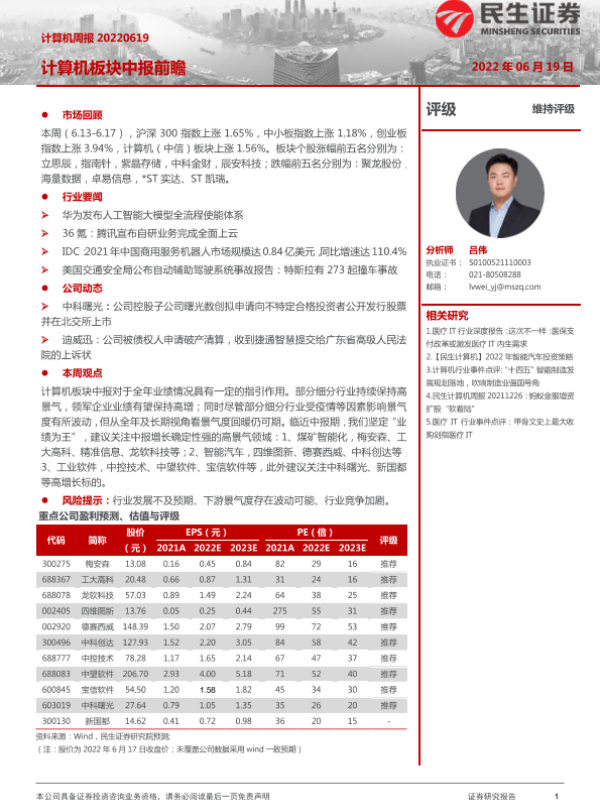 【民生证券】【20220619】计算机周报:计算机板块中报前瞻-17页 行业研究
