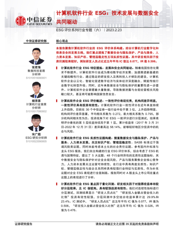 【中信证券】【20230223】ESG评价系列行业专题(六):计算机软件行业ESG,技术发展与数据安全共同驱动-36页 行业研究