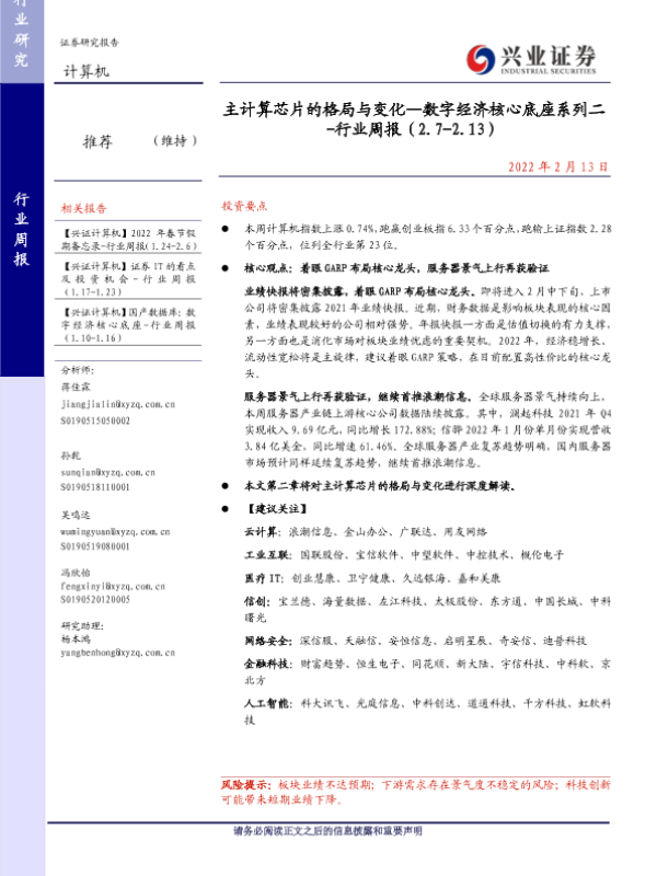 【兴业证券】【20220213】主计算芯片的格局与变化—数字经济核心底座系列二 -行业周报(2.7-2.13)-20页 行业研究