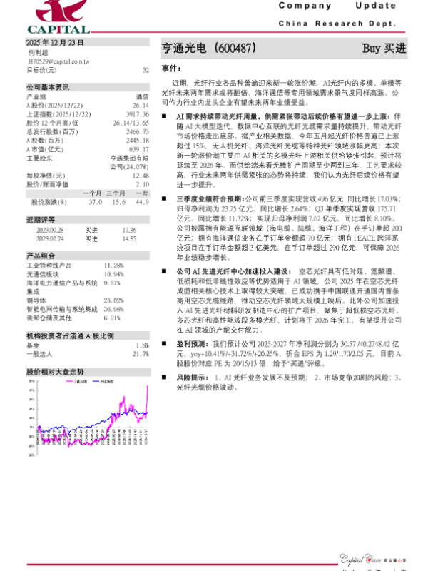 【群益证券】【202512】亨通光电(600487) Buy买进-3页 证券期货研究报告