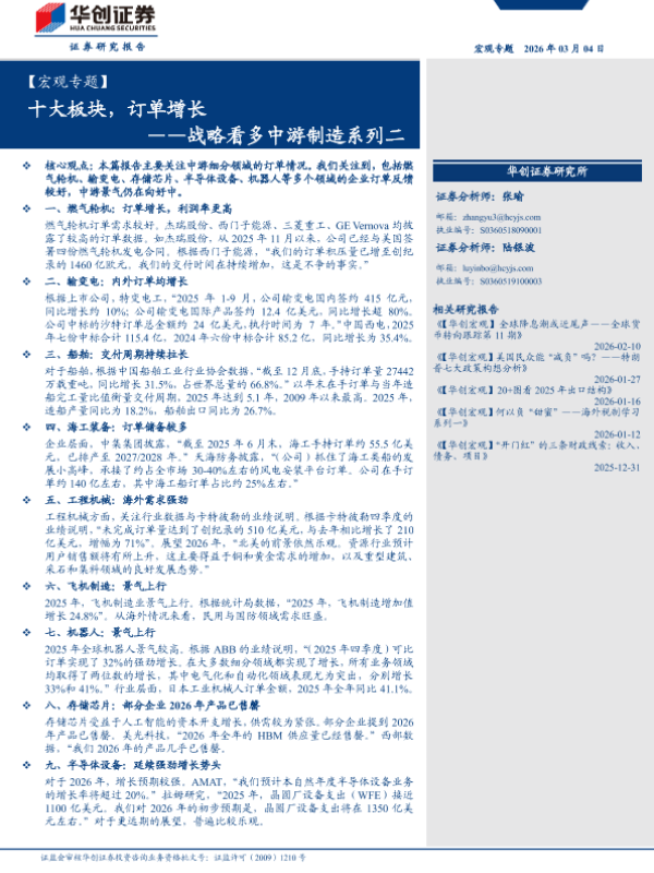 【华创证券】【2026】战略看多中游制造系列二——十大板块,订单增长-16页 证券期货研究报告