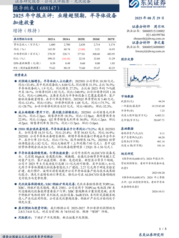 【东吴证券】【20250829】微导纳米-2025年中报点评:业绩超预期-半导体设备加速放量-3页 证券期货研究报告