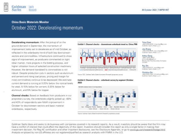 【Goldman Sachs】【202210】China Basic Materials Monitor October 2022 - Decelerating momentum-41页 行业研究