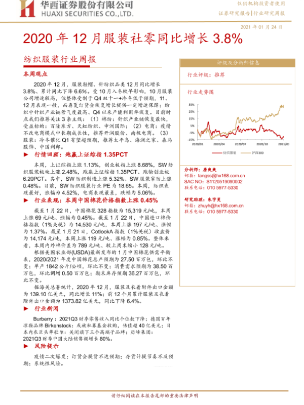 【华西证券】【20210124】2020年12月服装社零同比增长3.8%-20页 行业研究