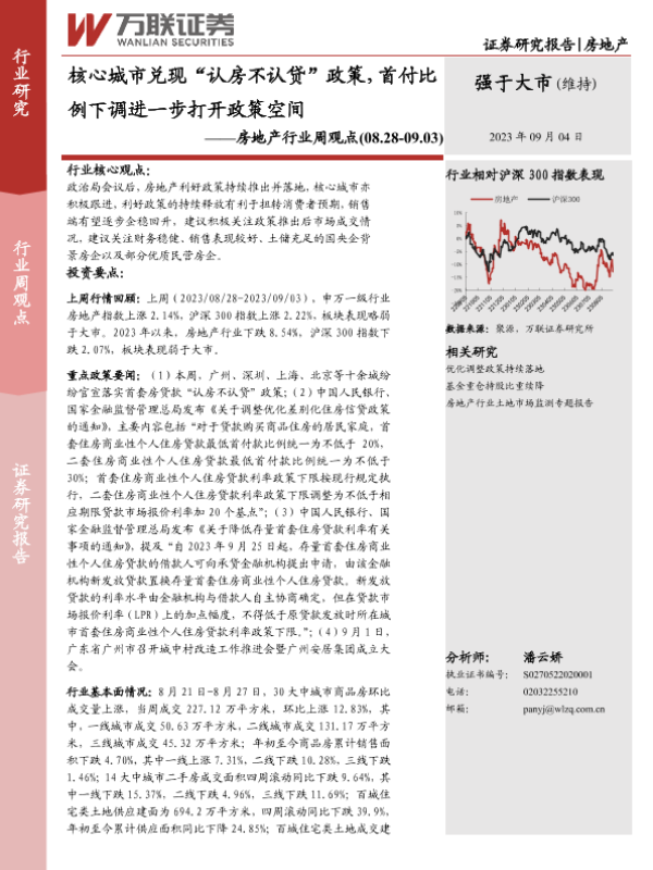 【万联证券】【20230904】核心城市兑现“认房不认贷”政策,首付比例下调进一步打开政策空间-18页 行业研究