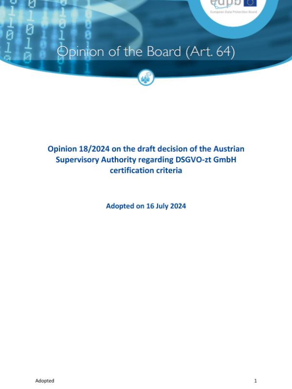 【欧洲数据保护委员会 (European Data Protection Board)】【20240716】关于奥地利监管机构关于DSGVO zt GmbH认证标准的决定草案的第18-2024号意见-12页 政策文件