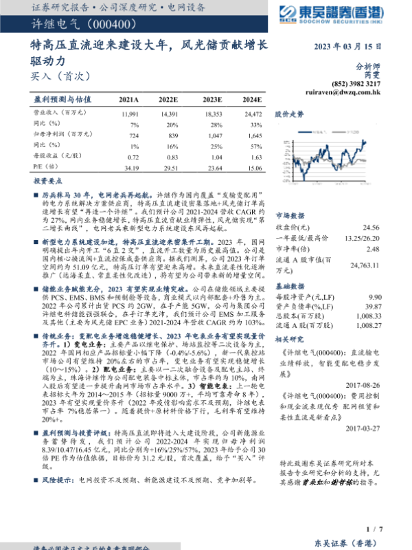 【东吴证券(香港)】【20230315】深度报告-20230315-东吴证券国际经纪-许继电气-000400.SZ-特高压直流迎来建设大年_风光储贡献增长驱动力-7页 行业研究