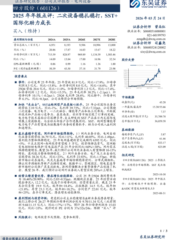 【东吴证券】【202603】2025年年报点评:二次设备稳扎稳打,SST+ 国际化助力成长-3页 证券期货研究报告