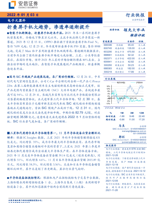 【安信证券】【20220103】电子元器件行业快报:折叠屏手机大趋势,渗透率逐渐提升-15页 行业研究