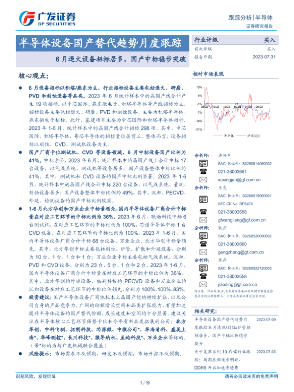 【广发证券】【20230731】20230731-广发证券-半导体设备国产替代趋势月度跟踪:6月退火设备招标居多,国产中标稳步突破-19页 行业研究