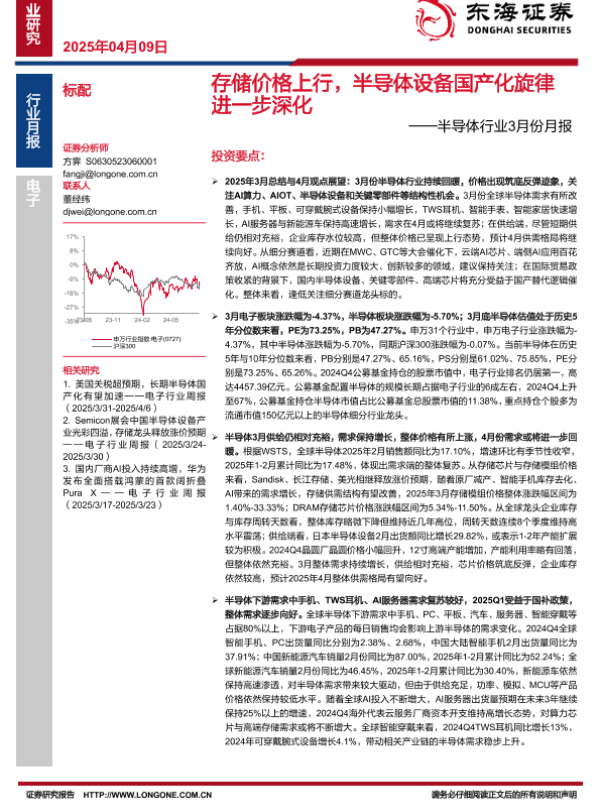 【东海证券】【20250409】存储价格上行,半导体设备国产化旋律进一步深化-28页 行业研究