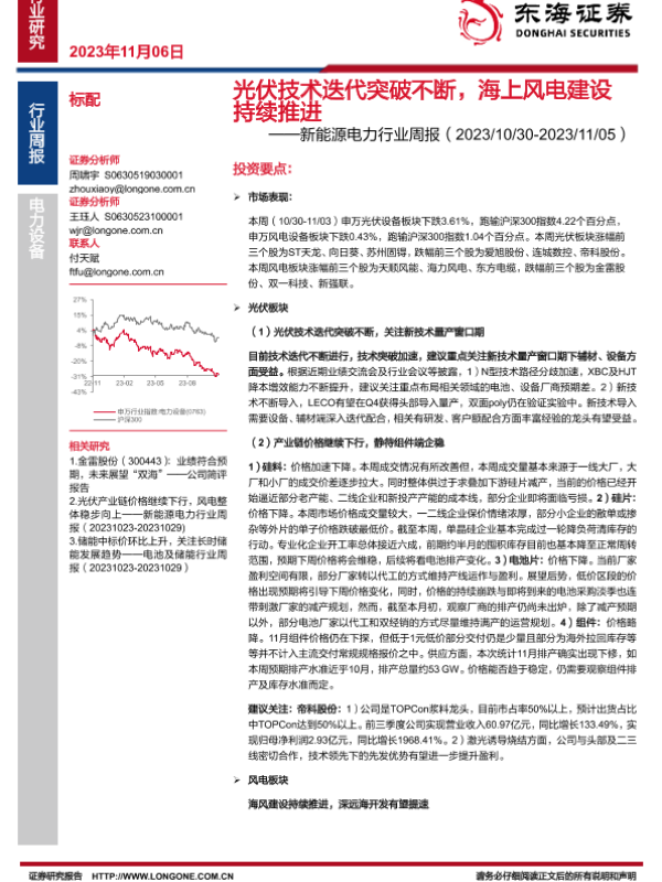 【东海证券】【20231106】光伏技术迭代突破不断,海上风电建设持续推进-19页 行业研究