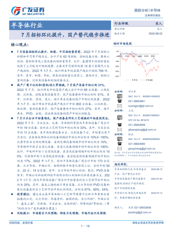 【广发证券】【20220822】20220822-广发证券-半导体行业:7月招标环比提升,国产替代稳步推进-12页 行业研究