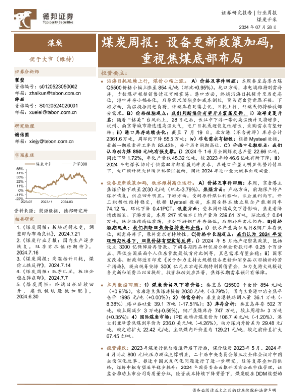 【德邦证券】【20240728】煤炭周报:设备更新政策加码,重视焦煤底部布局-17页 行业研究