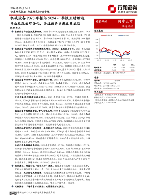【万和证券】【20240514】机械设备2023年报与2024一季报业绩综述-19页 行业研究