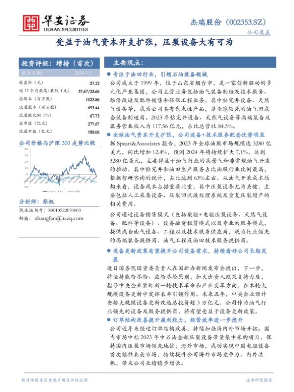 【华安证券】【20240906】杰瑞股份(002353)受益于油气资本开支扩张,压裂设备大有可为-39页 行业研究