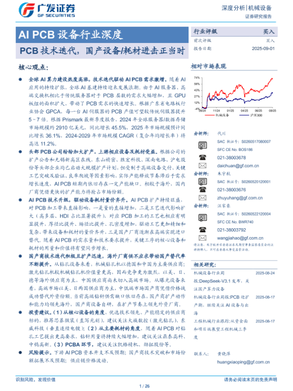 【广发证券】【202509】AI PCB设备行业深度:PCB技术迭代,国产设备/耗材进击正当时-26页 证券期货研究报告