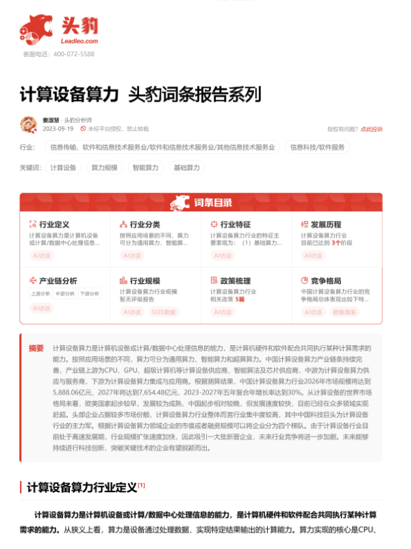 【头豹研究院】【20230919】计算设备算力 头豹词条报告系列-24页 行业研究